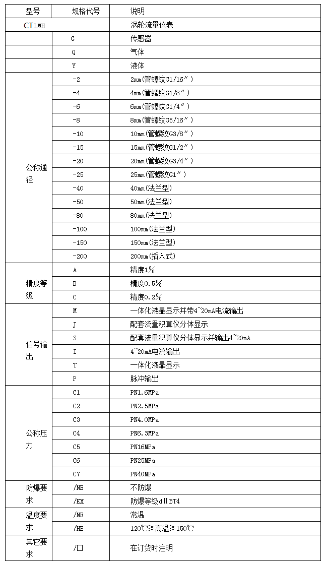 ◆ 防爆型渦輪流量傳感器電纜線的連接,必須嚴格遵守防爆放大器的有關標準。