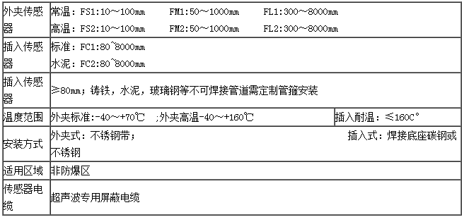 解 釋:夾持式超聲波流量計,配常溫中型傳感器,測量口徑300mm,電纜線長50m