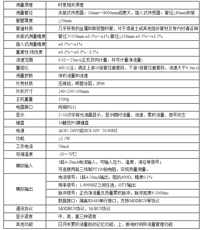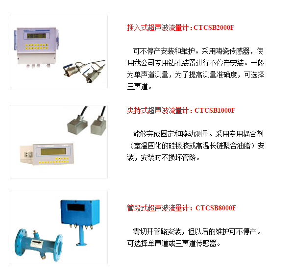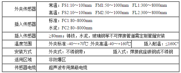 傳感器分為三種型式:插入式傳感器 外夾式傳感器 管段式傳感器 | ||||||||||||||