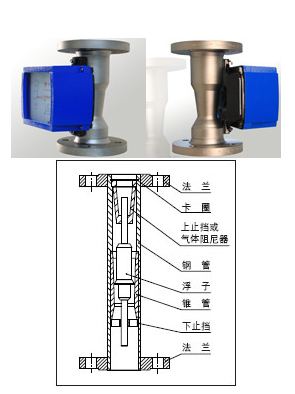 本流量計由測量部件和錐形測量管和浮子 組成,浮子能在錐形測量管中自由的上下移動,改變管道中的流通面積, 隨著流量大小的變化,浮子在測量管中的垂直位置也發生相應的變化,通鋼管過磁傳遞系統將浮子的位置傳遞到指示器的刻度盤上,指示流量值的大小。
