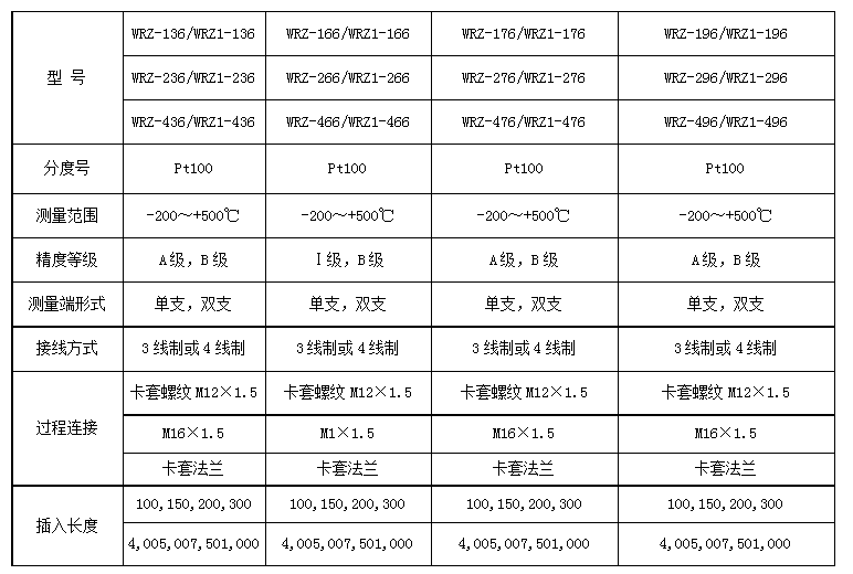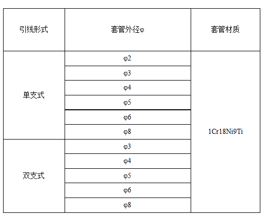 四、WRZ鎧裝鉑電阻選型表